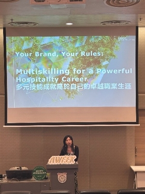 Academic Week 2025 opened with a dynamic session on multiskilling in hospitality, led by Ms. Crystal Zhong from Banyan Group, highlighting the power of personal branding in a global career. Dr. Alan Lai of Pet Space Group shared practical strategies for Gen Z to master time management and build meaningful networks. The conversation then turned to the future of AI-powered branding, with Mr. Jimmy Lau exploring how technology can elevate personal identity, followed by Mr. Carr Ho’s insights into the evolving influence of Meta and XHS. Ms. Kelly Sin inspired students with a forward-looking discussion on ESG and its role in shaping cross-disciplinary careers, while Ms. Teresa Chan concluded the week with a compelling talk on developing a multiskilled approach in today’s international workplace.
